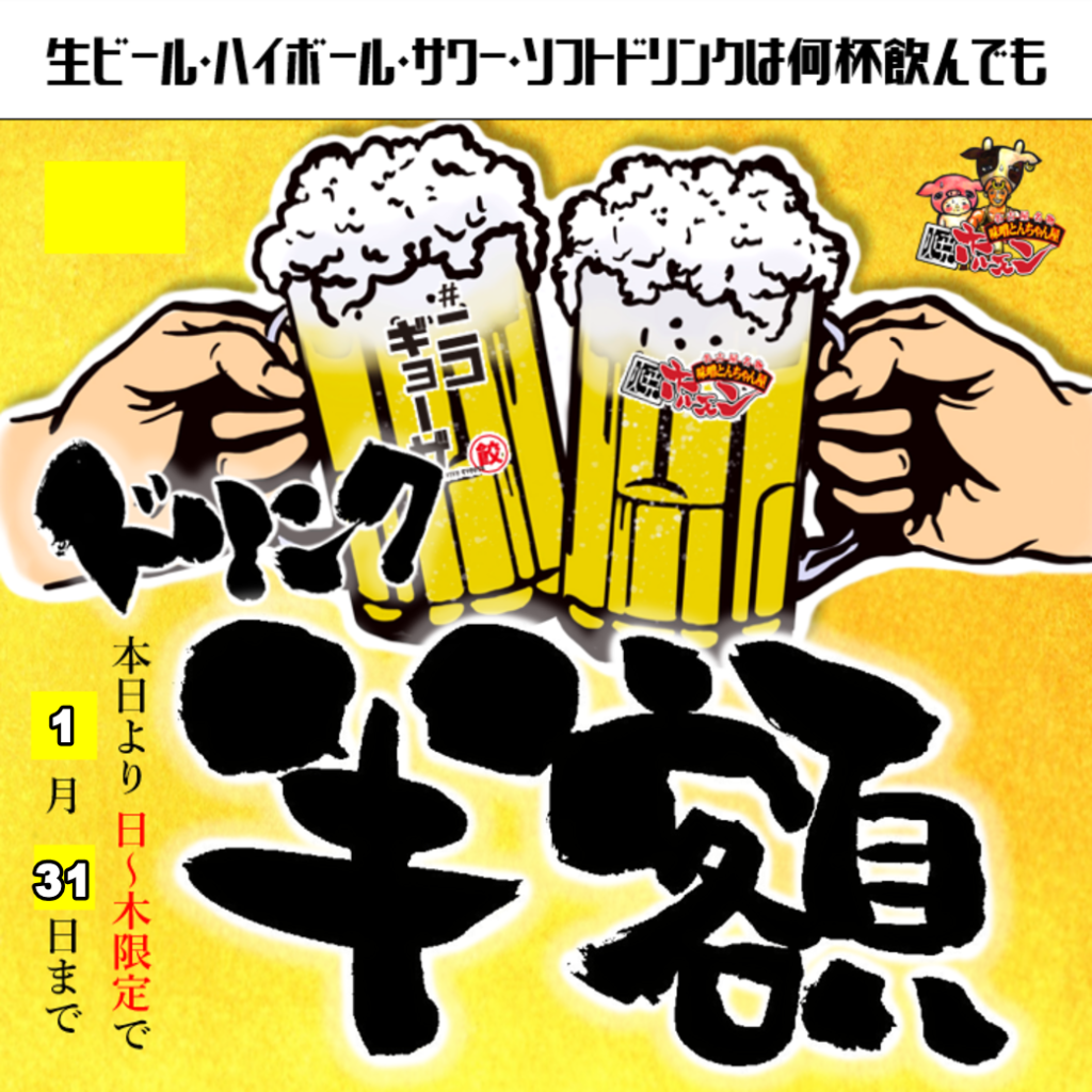 焼肉ホルモン味噌とんちゃん屋【 ドリンク半額EVENT 】