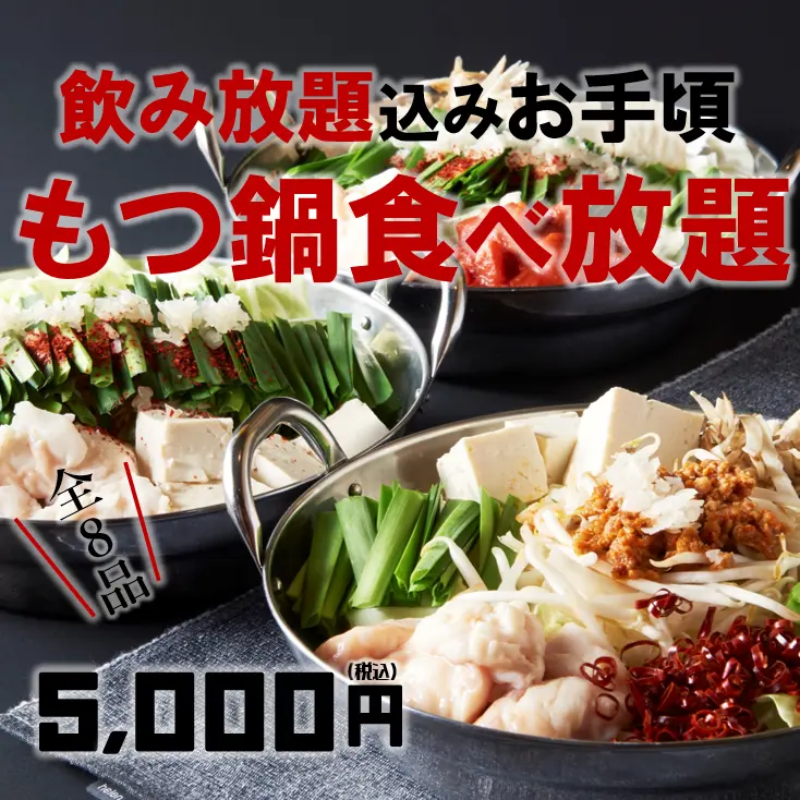 飲み放題込みお手頃 もつ鍋食べ放題 全8品