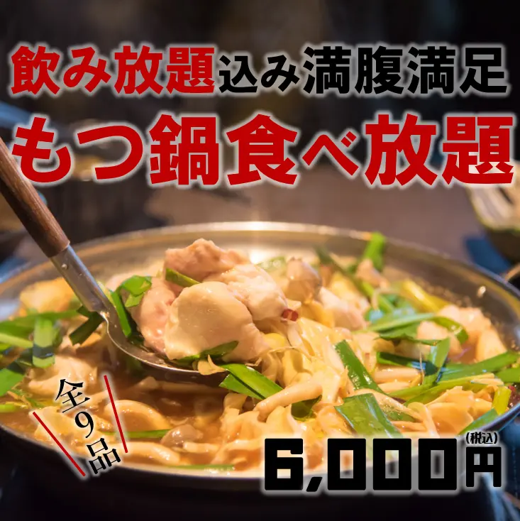 飲み放題込み満腹満足 もつ鍋食べ放題 全9品